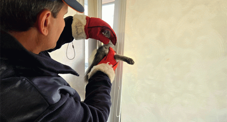 «За помощью обратилась женщина. Ее питомец застрял в балконной двери, поставленной на режим проветривания. Помочь коту самостоятельно у челябинки не получилось», – рассказали в городском УГО и ЧС.