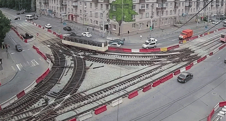 Там уложены рельсы для поворота со стороны Теплотехнического института на улицу Каслинскую.