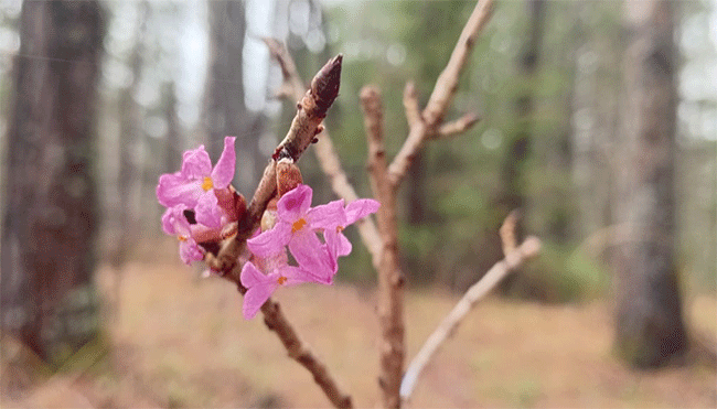«На Зигальге зацвел великанов цвет, он же – синюк, он же – чертов обгрызок, а по-научному – волчеягодник обыкновенный или волчье лыко. Узнать его очень легко: во-первых, цвести начинает раньше своих сородичей. В этом году волчье лыко явно идет на рекорд, потому что распустилось чуть ли не на месяц раньше обычного. Еще одна его примета – нежно-розовые цветки "сидят" прямо на голых побегах», – прокомментировали в пресс-службе нацпарка.