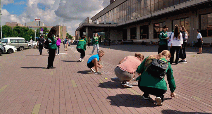 «Бойцы Российских студенческих отрядов вместе с детьми сделали рисунок поезда на Привокзальной площади – в составе получилось 60 вагонов», – сообщают организаторы.