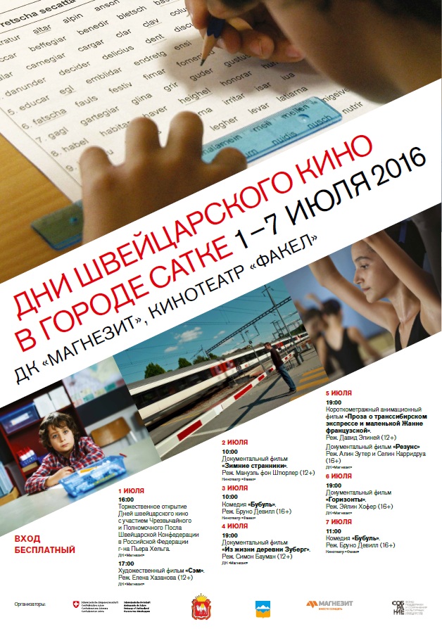 Весь июль в Сатке (Челябинская область) будет идти фестиваль швейцарской культуры – в рамках программы жители города и гости мероприятия смогут посмотреть семь швейцарских картин о взаимодействии различных культур, проблеме одиночества и стремительном росте городов, передает корреспондент Агентства новостей «Доступ» со ссылкой на пресс-службу регионального правительства.