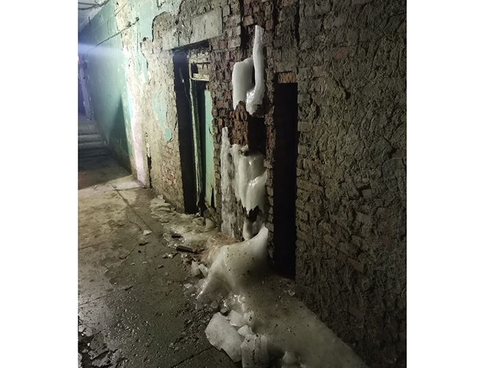 «При включении горячей воды нет давления, после дачи отопления начали рваться трубы, круглогодично горят электрощиты, а зимой на первом этаже появляются ледяные глыбы на стенах», – рассказала жительница дома.