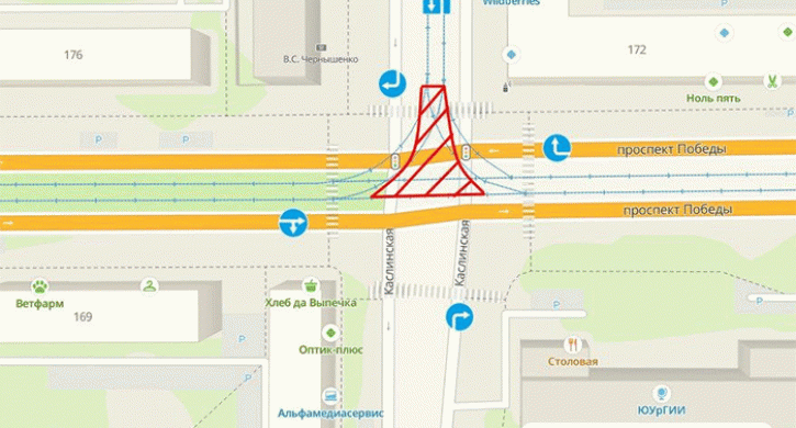 Так, с 22 часов 6 июня до 15 июля планируется закрыть движение по улице Каслинская в прямом направлении, по проспекту Победы – прямо и направо.