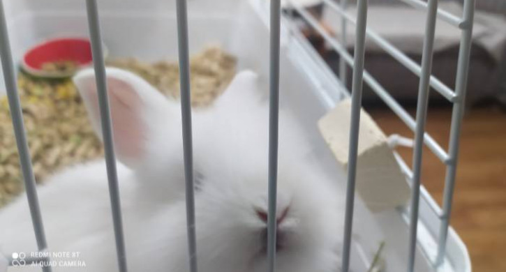 Декоративный зверек будет работать на новогодних утренниках, ему предстоит исполнять роль кролика, который появляется из волшебной шляпы фокусника.