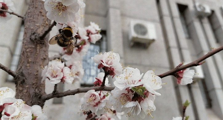 В центре Челябинска невероятно красиво зацвели абрикосы, передает корреспондент Агентства новостей «Доступ».