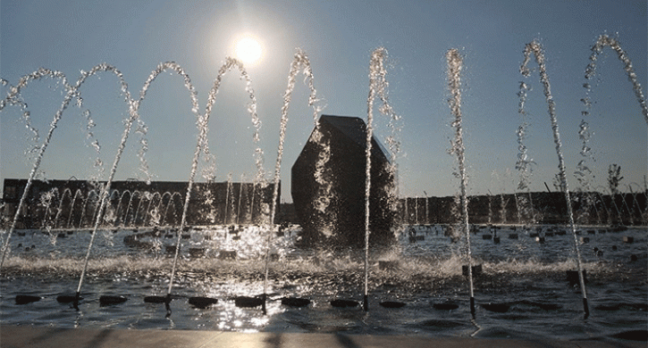 Главе государства продемонстрировали поющий фонтан, который он по видеосвязи открывал год назад: бьющие из гранитного основания струи с подсветкой «танцевали» в такт композициям группы Queen Show must go on, Георгия Свиридова «Время вперед!» и других.