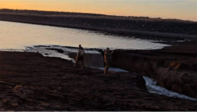 «По словам местных жителей, вода стремительно покидает водоем, уровень которого упал настолько, что береговая линия отступила уже более чем на 20 метров. На месте прорыва образовалась глубокая промоина, достигающая трех метров в глубину», – пишет SHOT.