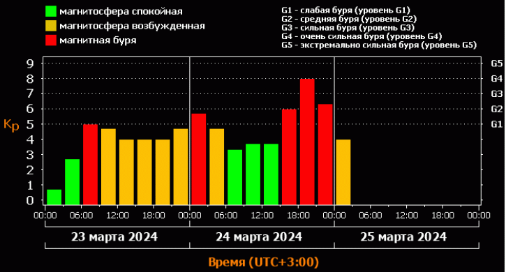 «Сила бури почти равна максимальной. Более сильный магнитный шторм, уровня G5, наблюдался последний раз в 2005 году, 11 сентября, то есть почти 20 лет назад», – говорится в комментарии специалистов Лаборатории солнечной астрономии ИКИ РАН и ИСЗФ СО РАН.