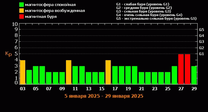 Январь-2025 начался с магнитных бурь и будет оставаться неспокойным до последних дней, передает корреспондент Агентства новостей «Доступ».