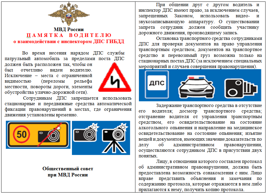 МВД России представило памятку для автолюбителей о взаимодействии с сотрудниками Госавтоинспекции – в ней разъясняются положения регламента по контролю и надзору за соблюдением правил дорожного движения, передает корреспондент Агентства новостей «Доступ» со ссылкой на пресс-службу ГИБДД России.