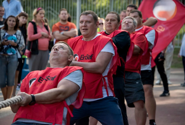 В соревнованиях по перетягиванию каната в этом году выступали исключительно мужчины. Схватки спортсменов проходили, как и всегда, очень зрелищно и эмоционально. Участники с завидным упорством боролись за победу, доказывая, что в строительстве работают сильные и стойкие мужчины. Самой крепкой оказалась команда ГК «Тополинка», чьи спортсмены второй год подряд выигрывают первое место. Серебро завоевали золотые призеры соревнований 2015 года – команда «Борей». Третье место заслуженно заняли мужчины «Челябинского завода электрооборудования».
