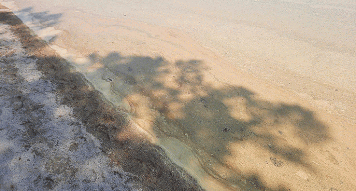 Вдоль береговой линии появилась мутная зеленая пленка, в том числе из-за обильного цветения тополя, хвойных пород деревьев.