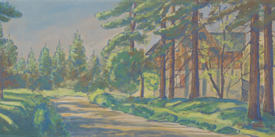 Циновец – горная деревушка в Рудных горах. Здесь Челябинская танковая бригада проезжала утром 8 мая. «Тогда им пришлось прорываться, здесь еще сидели немцы. Им предстояло преодолеть не только болота, но и заминированные отвесные скалы гор», – пишет художник.