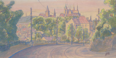 Следующая остановка – Терезин, древняя военная крепость, которая стала воротами в пекло Освенцима, Майданека, Равенсбрюкена, да и сам город стал могилой для тысяч людей. «И как тогда мы радовались, слыша о том, что советские войска пошли на Берлин, – отмечает художник. – И пришли! Советсткие танкисты – усталые, запыленные, отвечавшие на все вопросы только одно: "На Прагу– прямо"».