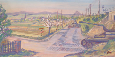 «Co стороны города Лоуны, что на северо-западе Чехословакии, открывается перед нашими глазами панорама Рудных гор, – так пишет в своих воспоминаниях художник Франтишек Витера. – Через эту живописную область и лежал путь Челябинской танковой бригады на Прагу. Спешили. Не было времени рассматривать незнакомый пейзаж. Но все это моя земля, мой родной край. И нет земли, похожей на нее. 3еленые долины, окруженные живописными горами, змейки рек, сверкающие пятна озер. А там, где проходит по реке Лабе северная граница, земля дает обильные урожаи пшеницы, ржи, овощей и фруктов. С другой стороны стеной стоит хмель – наше золото. Пиво, сваренное из него, знает весь мир. Но все это попало в руки немцев».