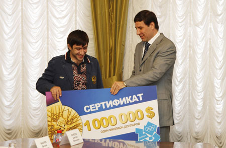 Воспитанник челябинской школы дзюдо Мансур Исаев получил из рук губернатора Михаила Юревича сертификат на 1 млн. долларов – крупную премию спортсмену вручили за «золото», завоеванное на XXX Летних олимпийских играх в Лондоне, передает корреспондент Агентства новостей «Доступ».