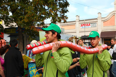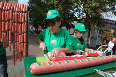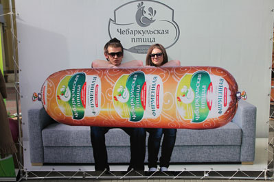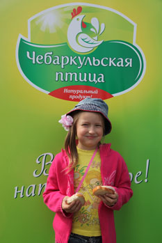 Не менее успешным День города стал для другого авторитетного предприятия «СоюзПищепрома»: на фирменной площадке птицефабрики «Чебаркульская птица» в центре улицы Кирова было особенно многолюдно. Здесь всех желающих угощали самой большой ветчиной «Деревенская» (45 килограммов) и колбасой «Чебаркульская» (40 килограммов).