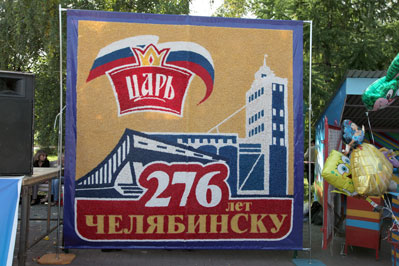 Так, праздничную площадку в городском парке им. А.С. Пушкина украсило панно из макарон-ракушек от торговой марки «Царь»: с надписью «Челябинску-276» и площадью более восьми квадратных метров.
