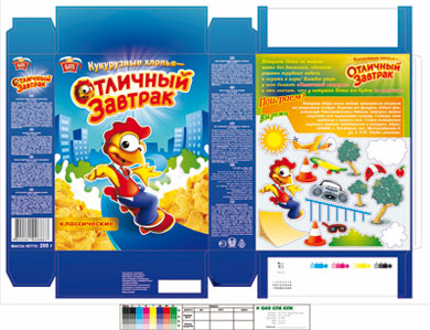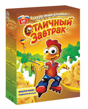 Торговая марка «Царь» (Объединение «СоюзПищепром») продолжает уникальную программу развития творческих способностей юных покупателей – прямо на упаковке ее кукурузных хлопьев «Отличный завтрак» дети могут найти детали увлекательной игры по созданию яркой аппликации о досуге главного героя готовых завтраков петушка Пети.
