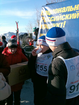 «Лыжи. Спорт. Задор. Веселье. “Царь” всем дарит угощение!» – яркие баннеры и растяжки от ТМ «Царь» поддерживали спортсменов от старта до финиша. У полевой кухни на протяжении всего соревновательного дня толпились спортсмены и многочисленные болельщики. Горячий чай, вкусный свежевыпеченный хлеб, каша на основе четырех злаков – все это добавляло здоровья и энергии.
