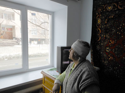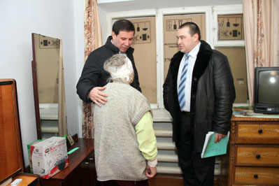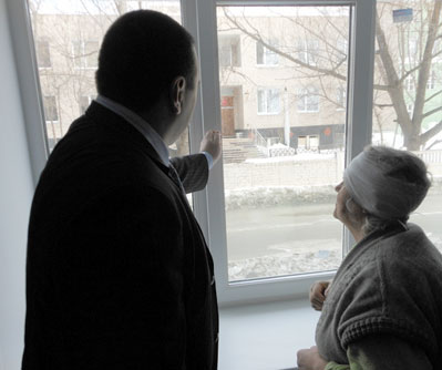 Во время визита губернатора окна были закрыты картоном, и Михаил Юревич попросил главу района помочь пенсионерке вне очереди.