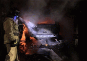 В Челябинской области после взрыва газового баллона в машине начался сильный пожар