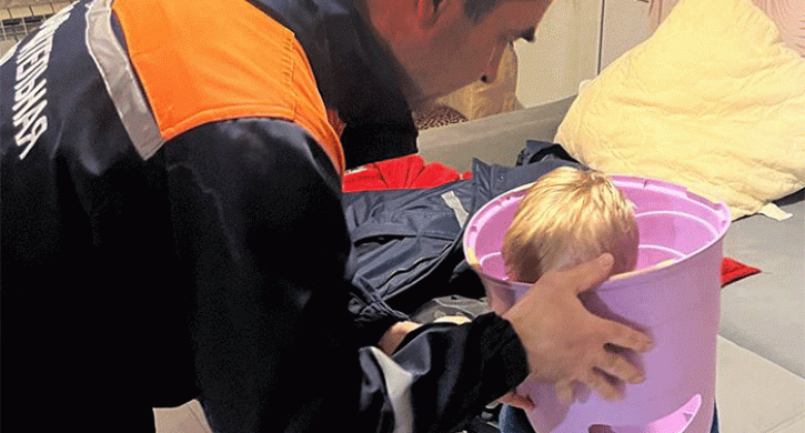 Помочь детсадовцу родители не смогли: пластик гнулся, доставлял боль, не отпускал голову «из плена».