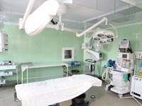 Палата интенсивной терапии оборудована современными реанимационными койками, мониторами, аппаратами ИВЛ, проведен кислород.