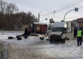 Грузовик с колбасой и пельменями отлетел в остановку после ДТП в Челябинске