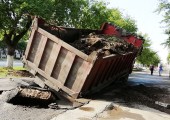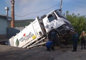 В Миассе грузовик провалился под землю