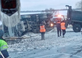 Самосвал перевернулся на трассе под Челябинском