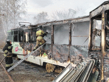 В Челябинске на территории трамвайного депо сгорели три вагона