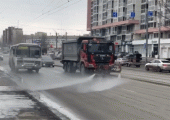 Около 20 спецмашин уже отмывают дороги Челябинска от зимней грязи