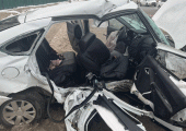 Под Челябинском один автомобиль после ДТП прижал другой к столбу