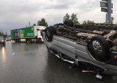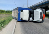 Микроавтобус с пассажирами перевернулся после столкновения с КамАЗом в Челябинске
