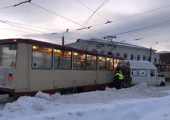 В центре Челябинска трамвай протаранил маршрутное такси