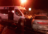 В центре Челябинска столкнулись маршрутка и легковушка