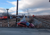 В Челябинской области грузовой поезд снес легковушку, выехавшую на пути