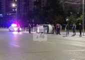 В Челябинске иномарка налетела на разделительные тросы и перевернулась