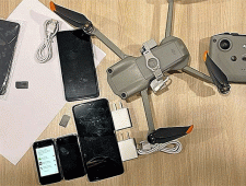 В тот же день сотрудниками той же колонии во время обхода задержан мужчина с квадрокоптером и пять сотовые телефонами.