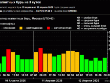 Модели показывают высокие – на уровне 90% – вероятности слабых магнитных бурь и возмущений в предстоящие трое суток.