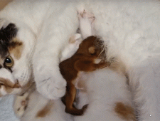 В Челябинске кошка согласилась выкармливать оставшегося без матери бельчонка