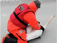 В Челябинской области спасатели поймали и эвакуировали с тонкого льда раненого лебедя
