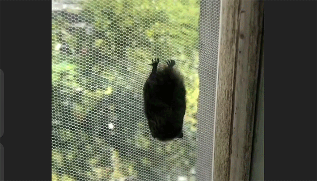 Животное залетело в окно здания старого музея и застряло между рамами.