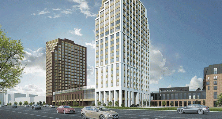 До конца 2026 года там появится два 6-этажных и два 19-этажных монолитно-каркасных дома на 350 квартир.