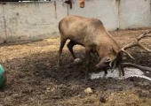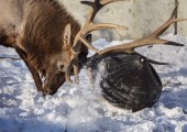Двух самок вернули к оленю Петру после того, как он сбросил рога.