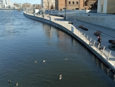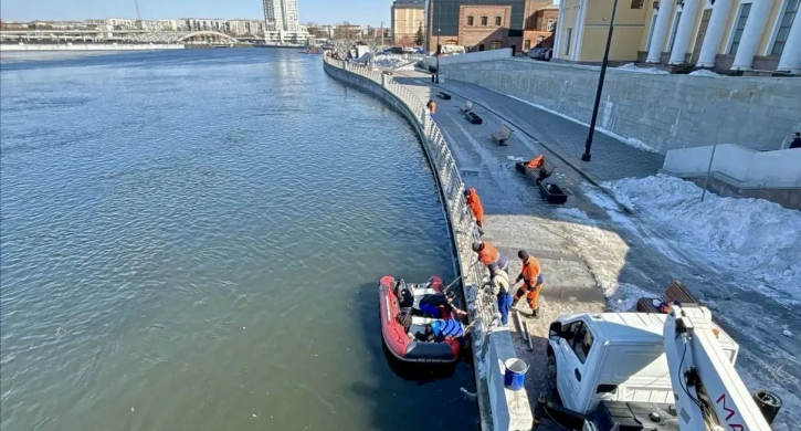 Река Миасс в Челябинске выходит из берегов, изменилась схема освещения подпорной стены