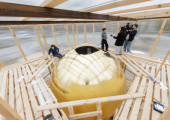 В Челябинске сферу памятника Архистратигу Михаилу начали покрывать сусальным золотом