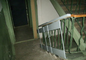 У пандуса отсутствуют поручни, бортики и тактильно-контрастные наземные указатели при подходе к лестничному маршу.