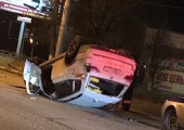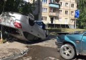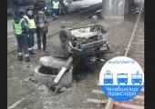 В Миассе иномарка перевернулась на крышу после столкновения со столбом